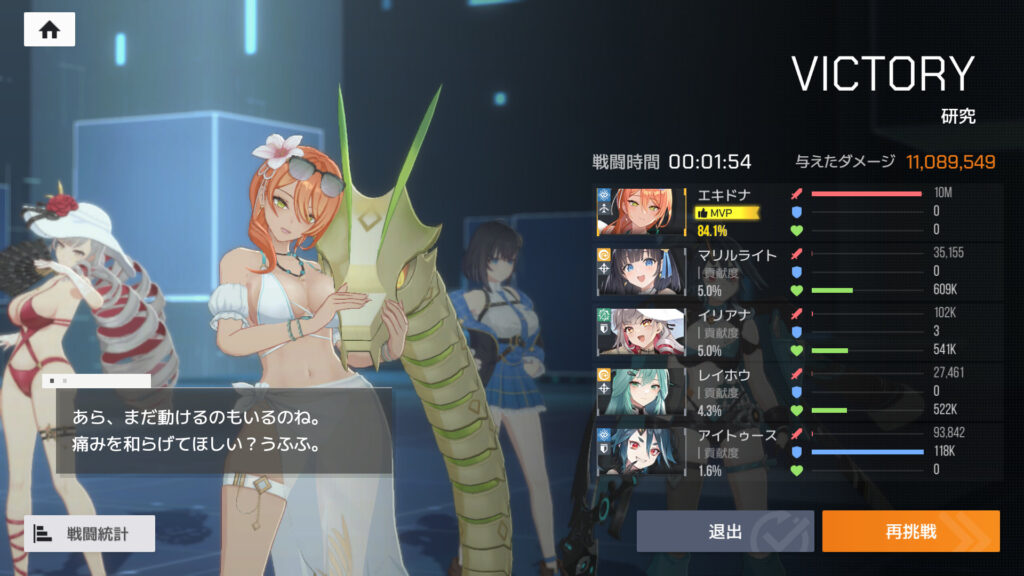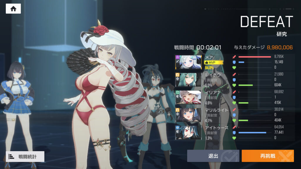 メアのBLOSSOM、けっこう好調に削ってて、倒しちまうか、と思ったんだけど、途中でやられた。イリアナはこんなにタコ殴りにされても生きてるのはなんなんだ