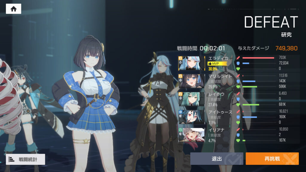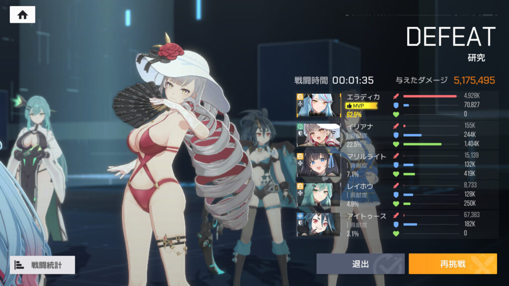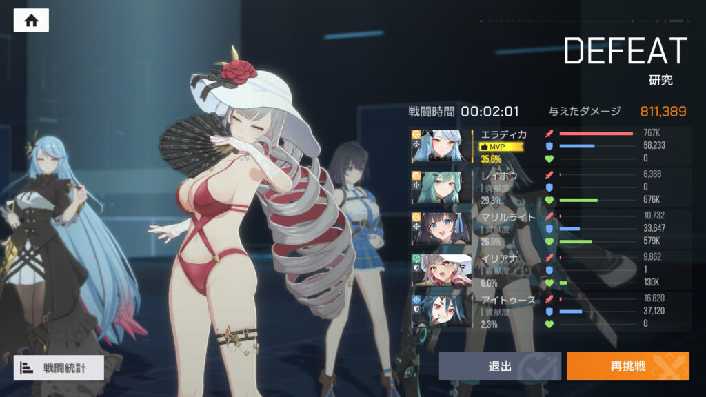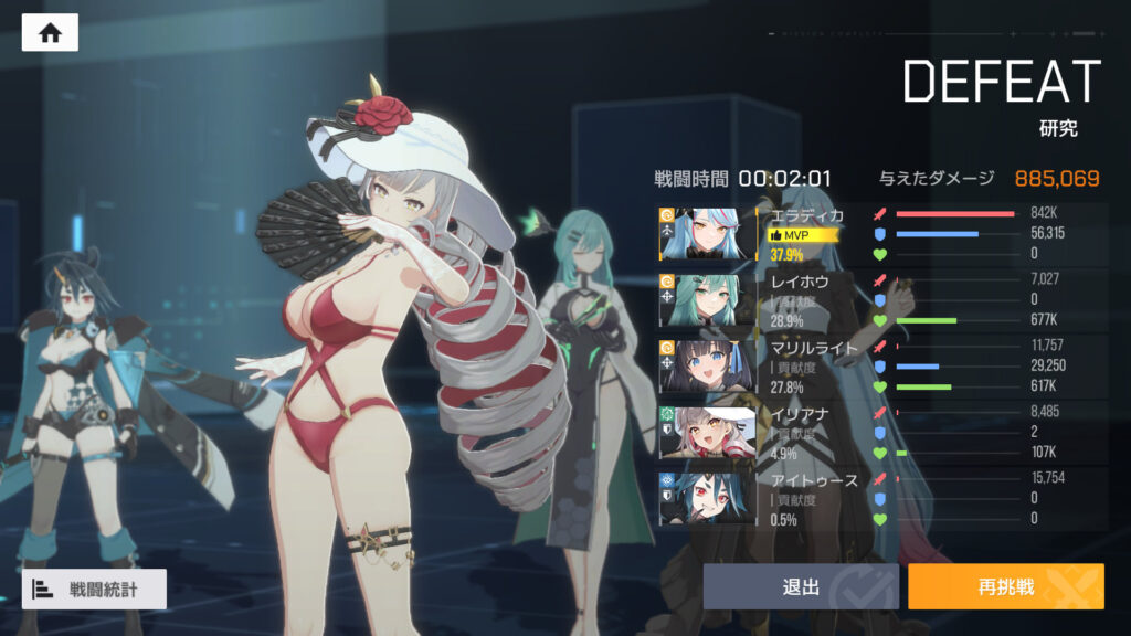 ここまで見た感じ、エラディカを一線で使うのは難しいかなぁ…。かなた、メア、エキドナの方が断然強い。特に、凸りやすい一般コアのかなたとエキドナに負けてるのは致命的だなぁ。エールも未検証だけどエラディカよりは強いはず