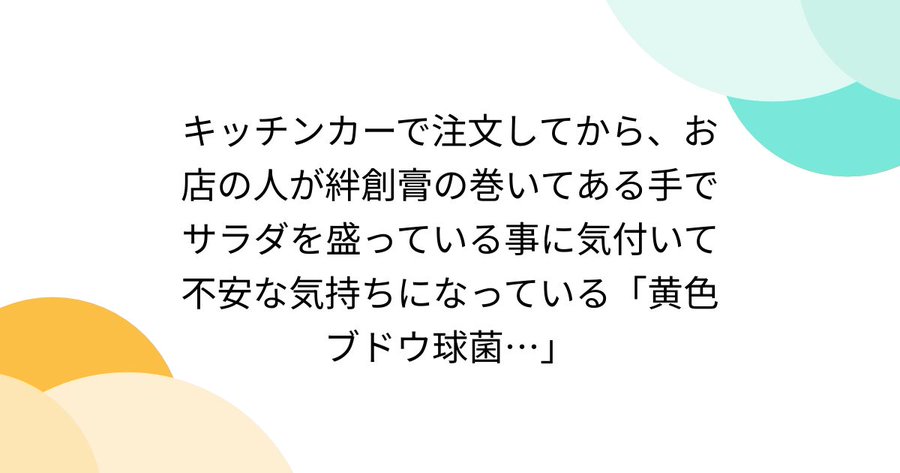 キッチンカーで注文してから、お店の人が絆創膏の巻いてある手でサラダを盛っている事に気付いて不安な気持ちになっている「黄色ブドウ球菌…」