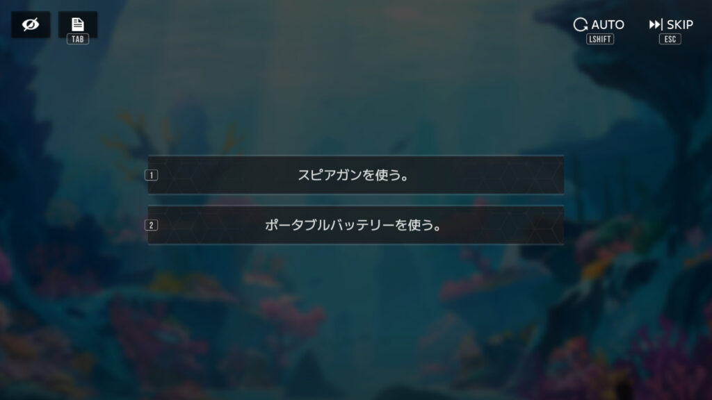 ここ、オートでスピアガンを使うと無限ループするな…。バッテリーを使えってことか