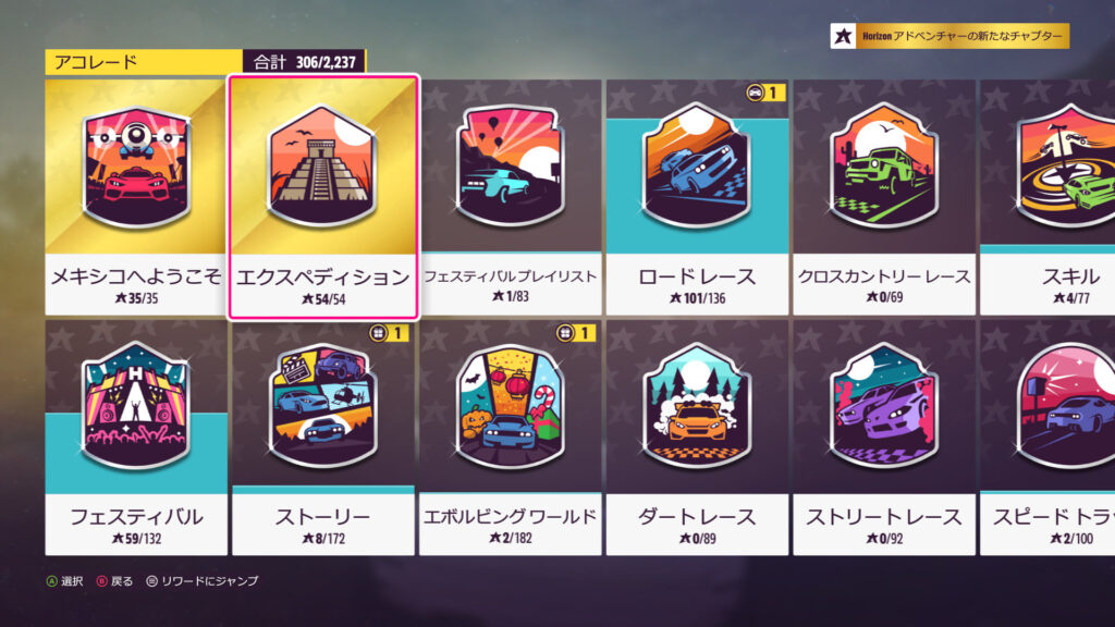 エクスペディションのアコレード全部クリアしてた