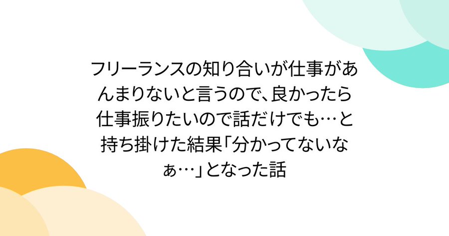 フリーランスの知り合いが仕事があんまりないと言うので、良かったら仕事振りたいので話だけでも…と持ち掛けた結果「分かってないなぁ…」となった話