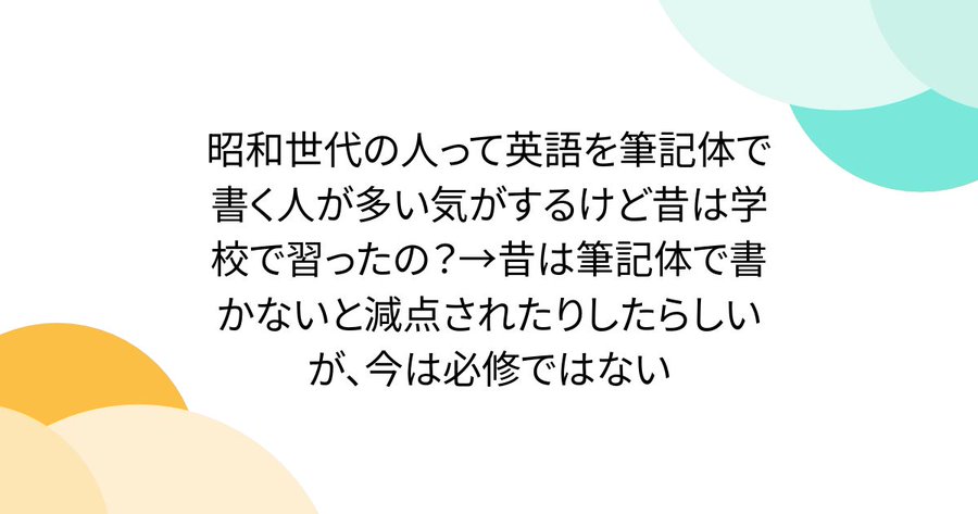 昭和世代の人って英語を筆記体で書く人が多い気がするけど昔は学校で習ったの?→昔は筆記体で書かないと減点されたりしたらしいが、今は必修ではない