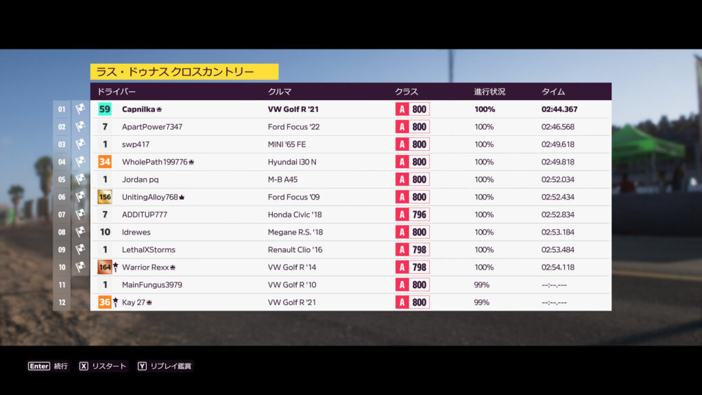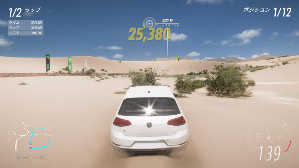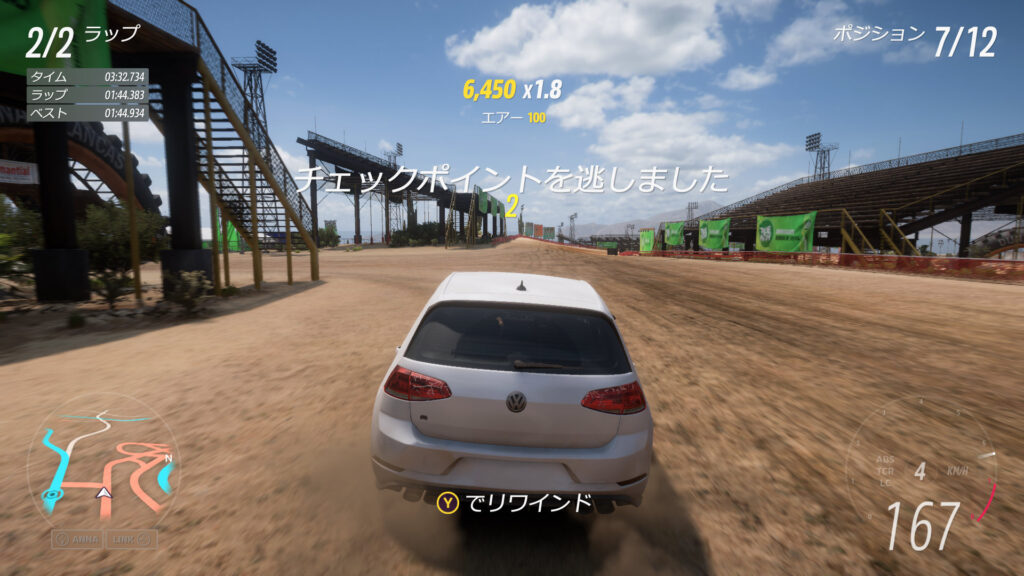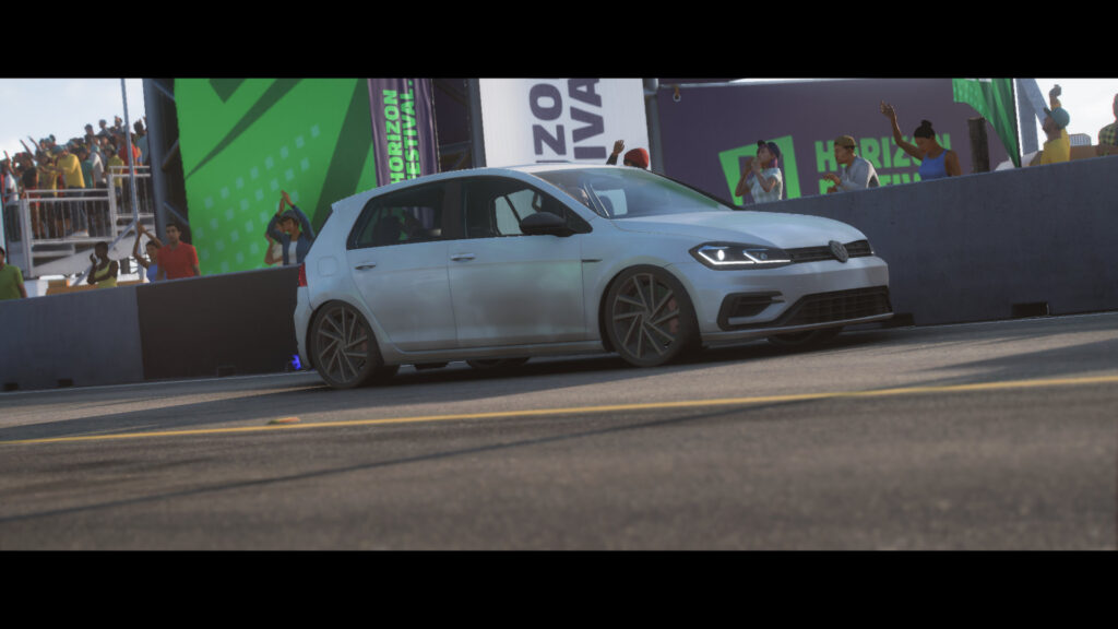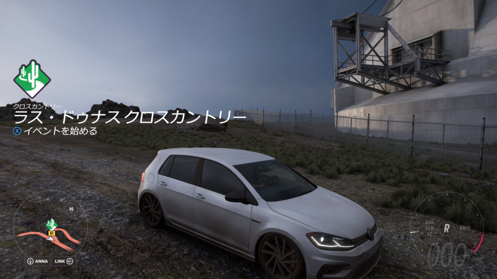 車は、Redditでおすすめされてた2021年型フォルクスワーゲンGOLF R。ラリー用タイヤを付けてA800までオートカスタマイズしてある