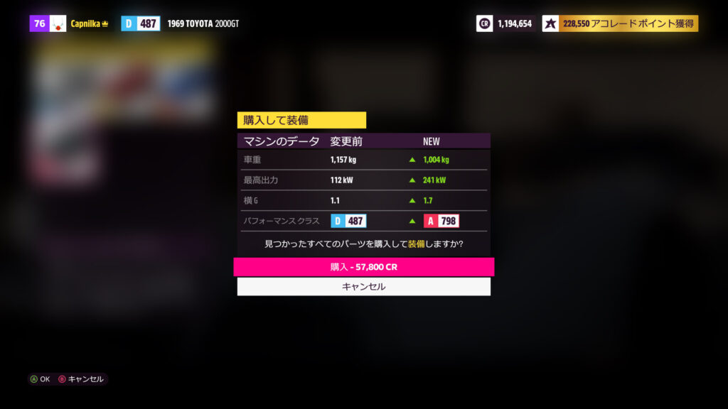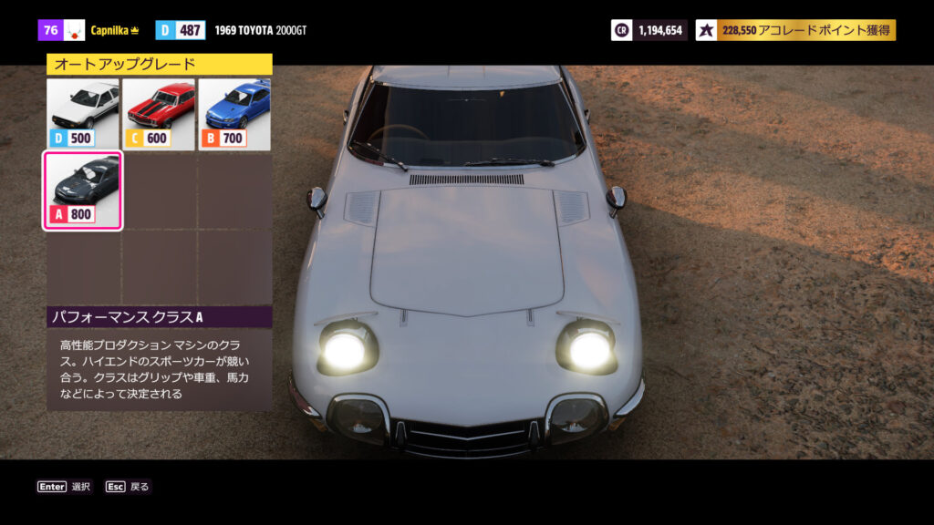 GT2000は無改造だとパフォーマンスD487、最高速236km/h。まぁ1969年の車だしな