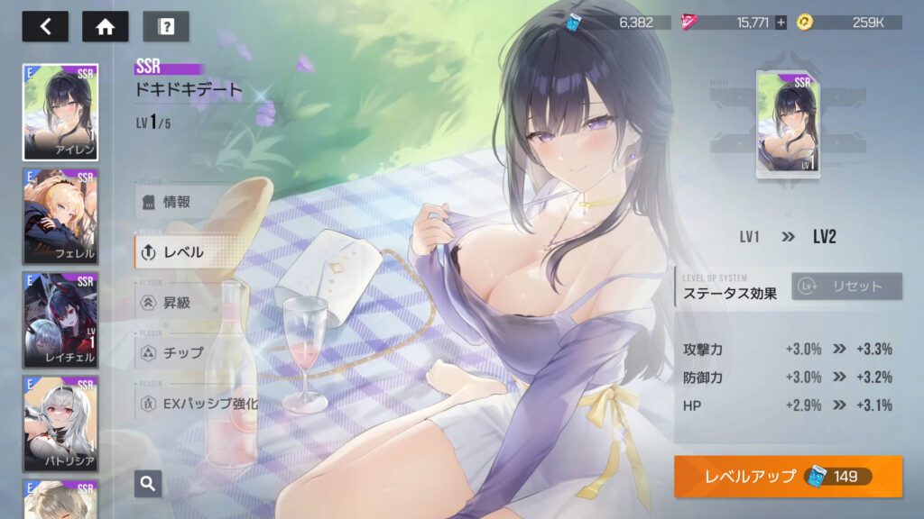 今さら気付いたけど、プラグインにもレベルと凸があるらしい レベルアップに必要なプラグイン強化チップは、SSRプラグインの場合、149+158+168+178=653個。たぶん凸が進むとさらにレベルアップできるんだろうな