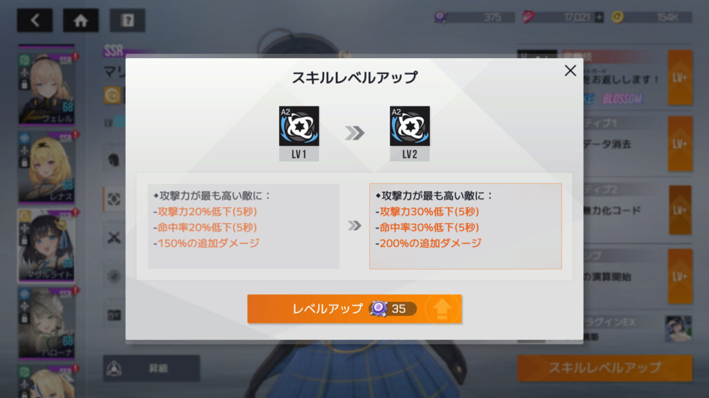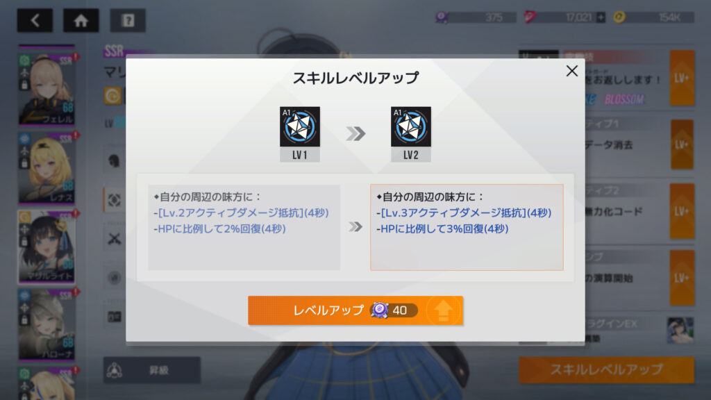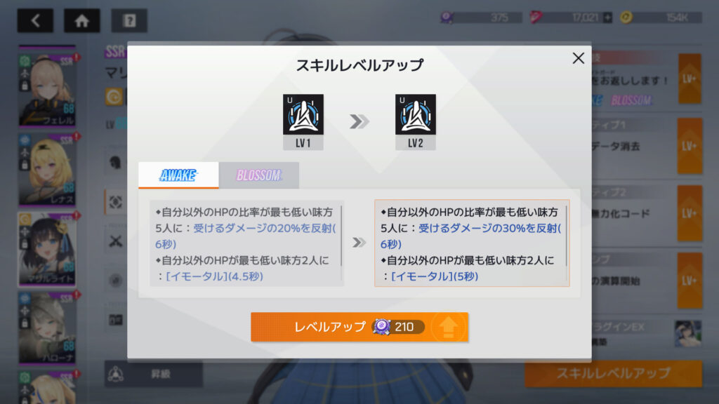究極技をLV1からLV2に上げるにはスキルコア210個、他のスキル3つは150個