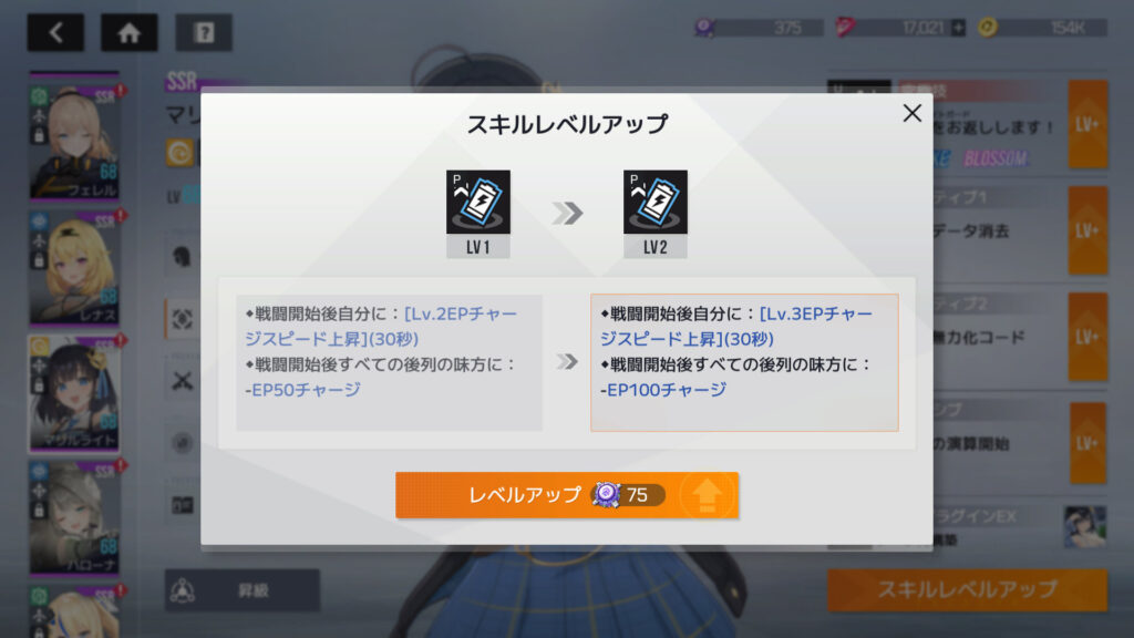 スタメンのうち、2キャラは究極技まで、3キャラは他の3スキルだけ。それと未使用のが375個で、現在の手持ちのスキルコアは(210+150)×2+150×3+375=1,545個
