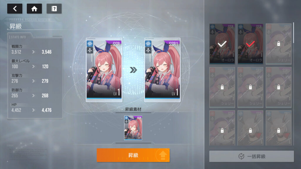 なお本番のSSR1をURにする際の素材SSR1はキャラが違ってても良い