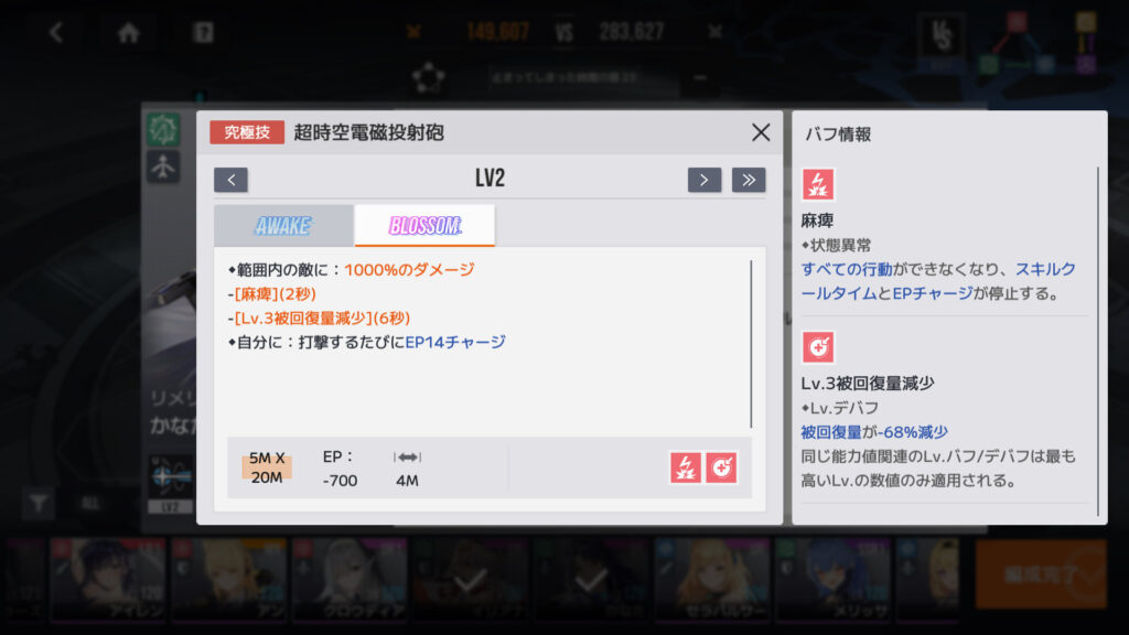 ここの戦闘記録のかなたはBLOSSOM。麻痺か…