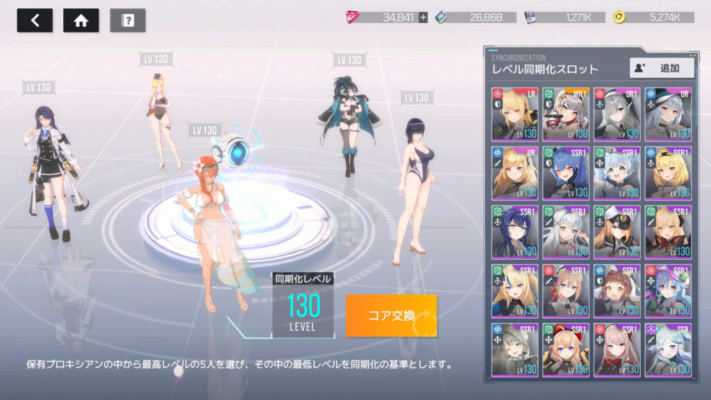 同期化レベル130。同期元はパトリシアの代わりにかなたを入れた