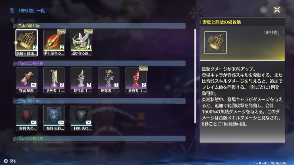 今回の黄金の贈り物は、今州キャラには使えそうにないな…
