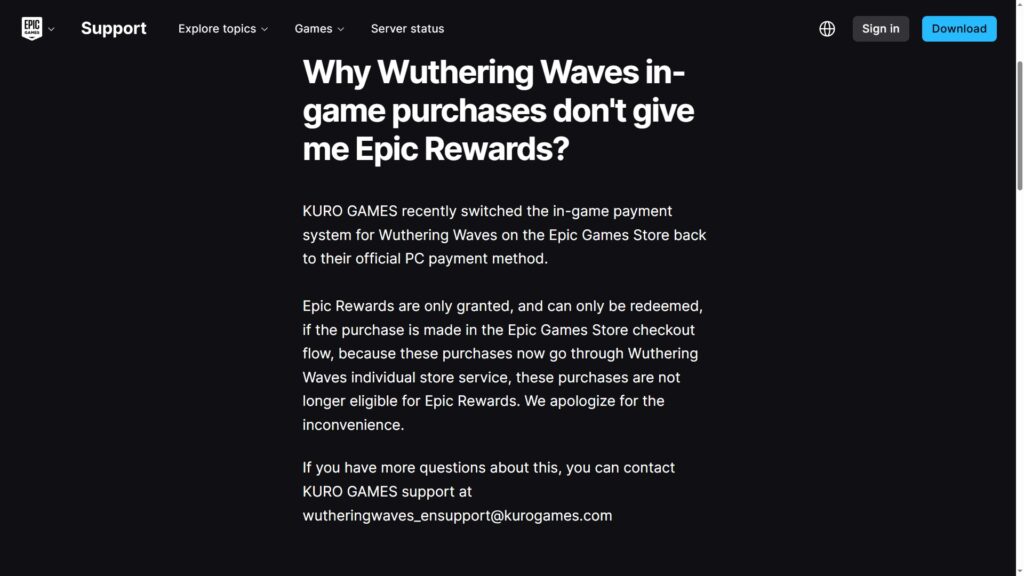 【鳴潮】Epic Games版鳴潮における突然の決済システムの変更についてお気持ち表明