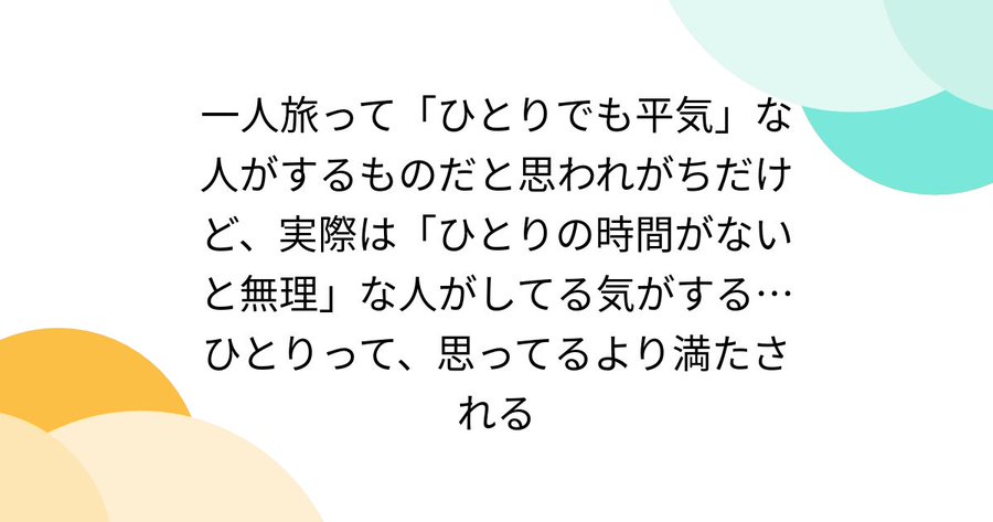 一人旅って「ひとりでも平気」な人がするものだと思われがちだけど、実際は「ひとりの時間がないと無理」な人がしてる気がする… ひとりって、思ってるより満たされる