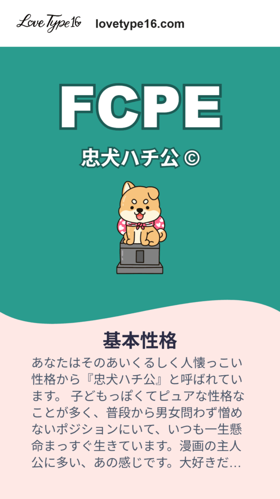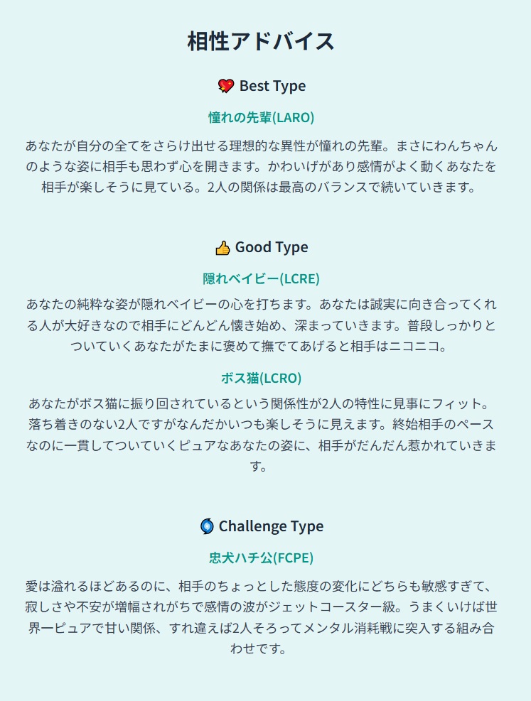 やってみた。忠犬ハチ公はともかく、ベストタイプが憧れの先輩ってのは当たってるなぁ
