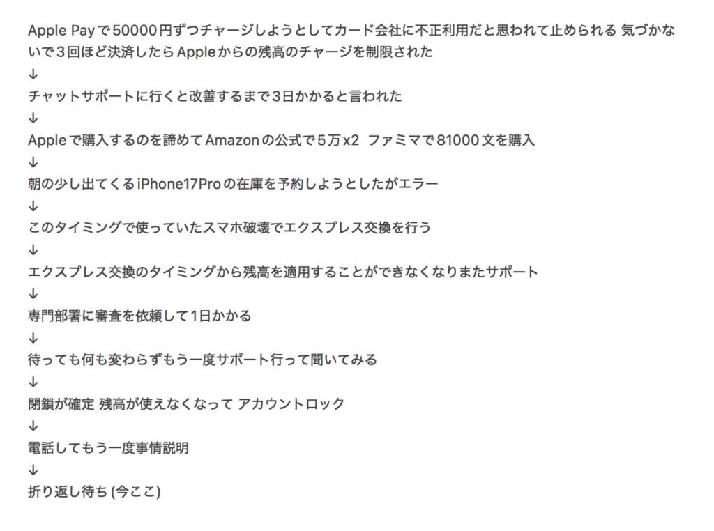 元ツイ主もけっこう無茶をやってる雰囲気だし、なんともだなぁ…。クレカ会社やAppleが不正防止のためにやってることをズルで回避しようとするからこういう目に遭うんじゃないの。こういうのを許すと、犯罪者がやりたい放題になるからな