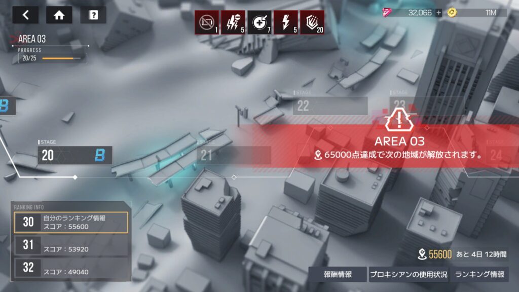 ステージ20までで65,000点か。1ステージあたり3,250点