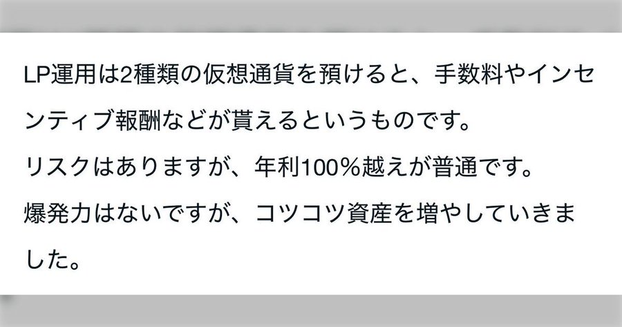 • ある程度稼げたらトレードは辞めてLP運用しよう。あと会社も辞めたい