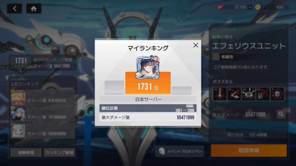 PHASE 5で全滅、暫定1,731位