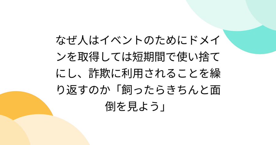 なぜ人はイベントのためにドメインを取得しては短期間で使い捨てにし、詐欺に利用されることを繰り返すのか「飼ったらきちんと面倒を見よう」