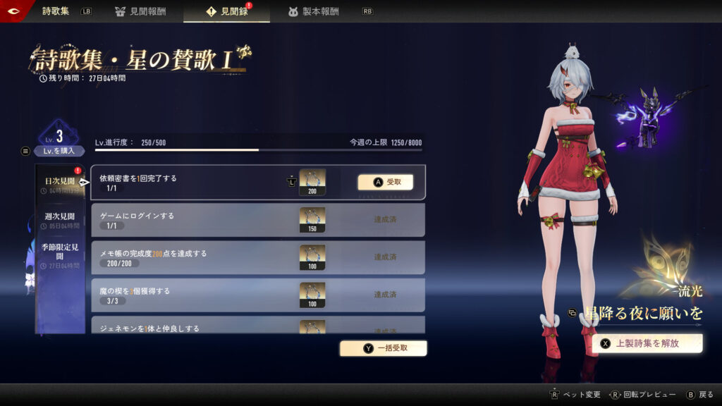 これで詩歌集のデイリー課題もクリア。今日のところはここまでか