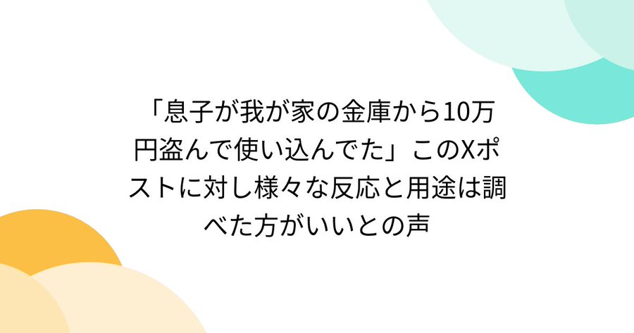 「息子が我が家の金庫から10万円盗んで使い込んでた」このXポストに対し様々な反応と用途は調べた方がいいとの声 https://togetter.com/li/2622365 #Togetterより そういう風に育てたのはお前なんだしお前が悪い