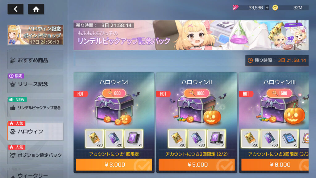 ハロウィンパッケージは3,000円か…。つか、パッケージ販売終了後に一括配布って、もうハロウィン終わってるのに意味なくね