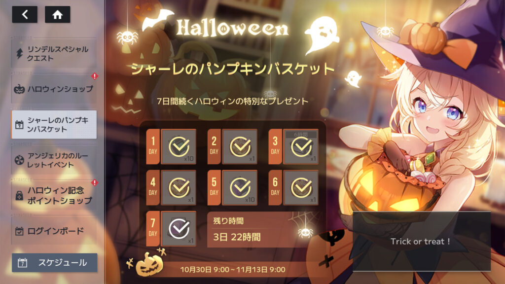 イベント「28日ログイン」と「シャーレのパンプキンバスケット」終了