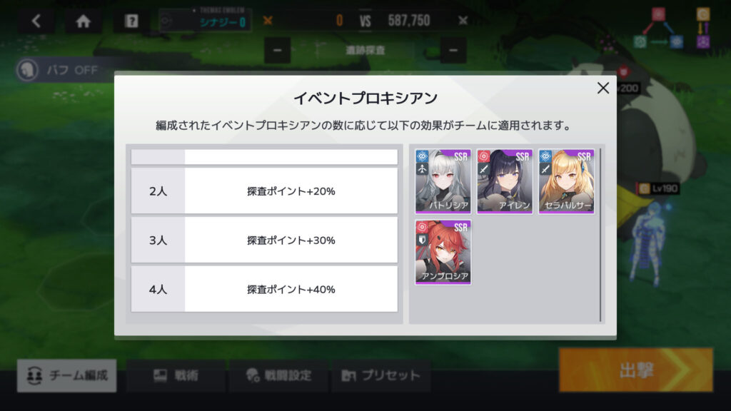 遺跡探査、ボーナスはこの4人か…。サポーターを入れるか、かなたを入れるか
