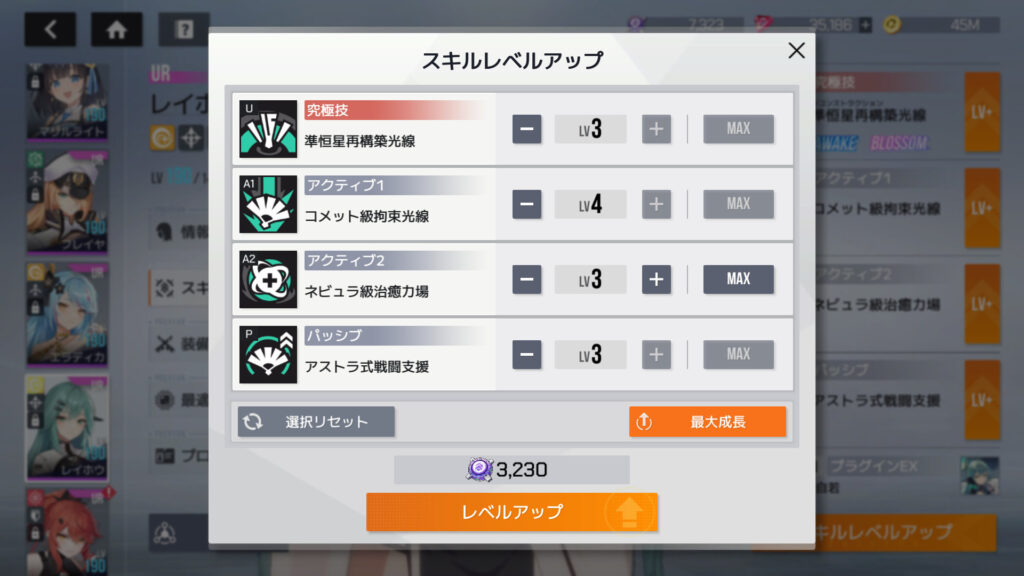 スキルコアの棚卸しをしたところ、トータル35,000個。10キャラをスキルLv.3/4/3/3にできる