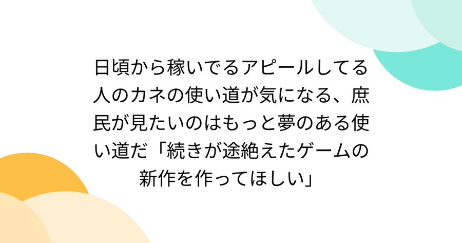 スポーツに興味がない身としては、故郷にサッカーチームを立ち上げることの何に夢があるのか、ちょっとピンと来なかった。つか、元ツイ主本人はサッカー嫌いだって言ってるんだよな…。何なんだ