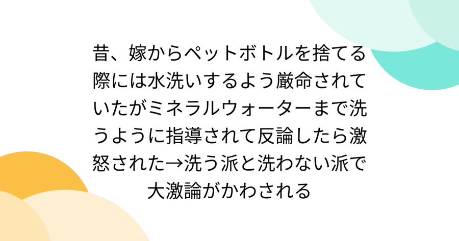 まぁリサイクルと家庭安寧を天秤にかけてリサイクルを取った結果が家庭崩壊につながったってところか。もしくは、元々旦那に不満があったのが、このペットボトルの件で爆発したって可能性もあるけど