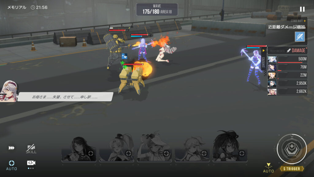 ウェーブ154でエール、ウェーブ157でかなた、ウェーブ174でアイトゥースが死亡、ウェーブ175で全滅