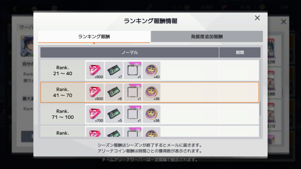 チームアリーナ、勝てるようにはなってきたけど、順位は上がらないな。まぁこっちはバッジもないし、200位に入ってURフレームを貰えばいいのかな。40位のUR1フレームはちょっと厳しい