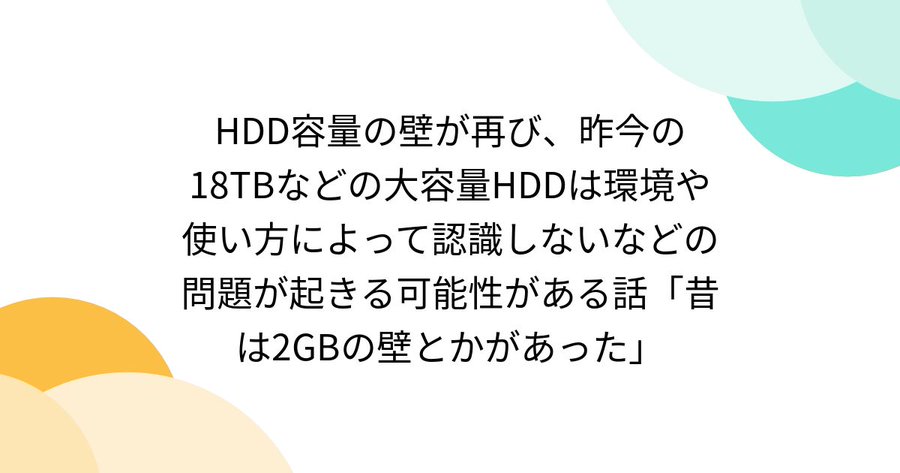 まぁこの手のはシステム側の管理上の問題なんで、大容量SSDでも同じ問題はあるんだろうけど。一般人は18TBのSSDなんか使わんだろうし関係ないな