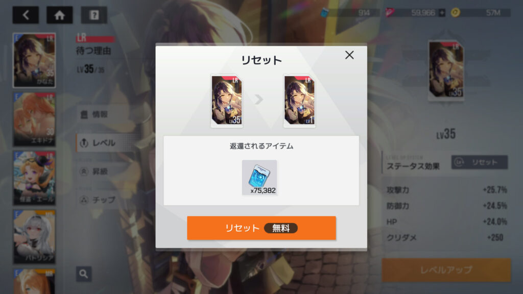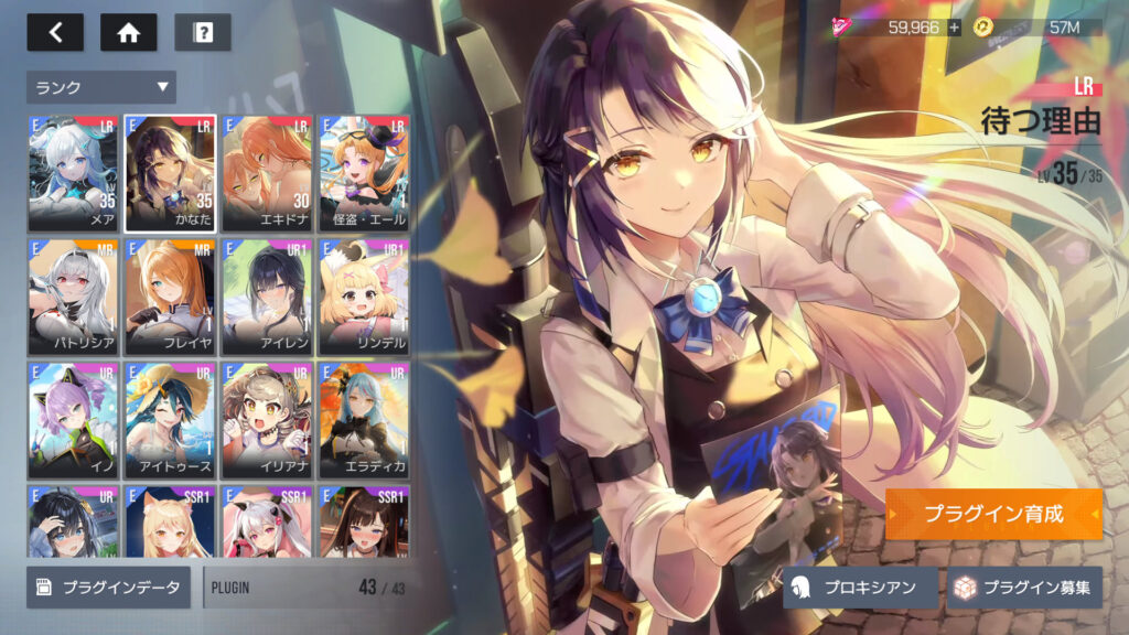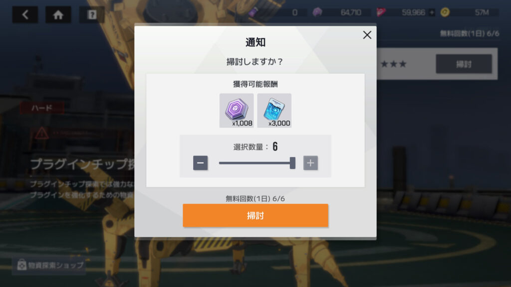 30段階クリア済みの物資探索で得られるプラグイン強化チップは3,000個。プラグインをLv.35まで上げるのに必要なチップは75,382個なんで、物資探査のみだと26日かかる。現在サービス開始から80日間でLv.35×2人とLv.30×1人
