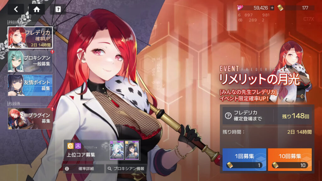 フレデリカ悩ましいな…。LRにするならあと4枚。破格パックで1枚、募集券177枚で1枚、スタービット3万個で1枚、あともう一枚、なんとか募集券で出てくれればってところだが。3万円使ってメアをLRにしたばっかだしなぁ…。でもフレデリカはLRにしておかないといけないキャラだよなぁ