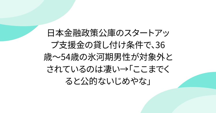 開業後おおむね7年以内ってことで、もう融資資格からは外れてるな。まぁ融資は必ず返さないといけないし、コロナ給付金みたく貰って終わりってわけじゃないから、難しいな
