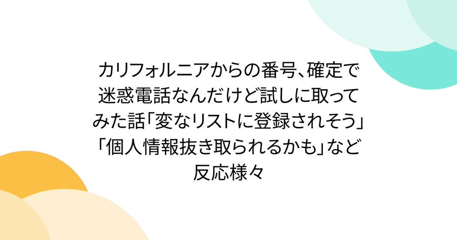 カリフォルニアからの番号、確定で迷惑電話なんだけど試しに取ってみた話「変なリストに登録されそう」「個人情報抜き取られるかも」など反応様々