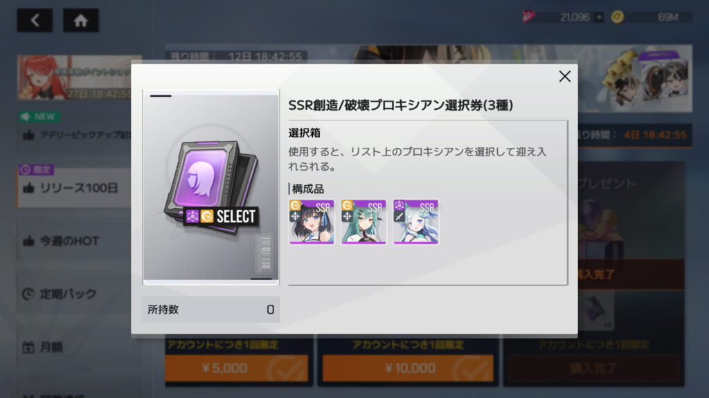 1万円のSSR創造/破壊プロキシアン選択券(3種)、エラディカとフレデリカを入れないのは何なんだ…