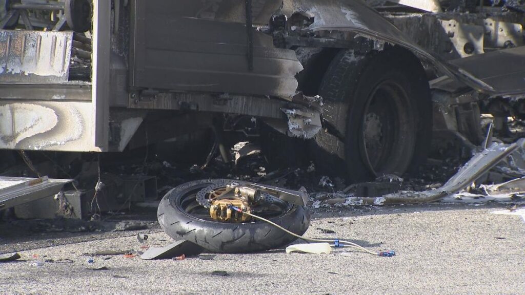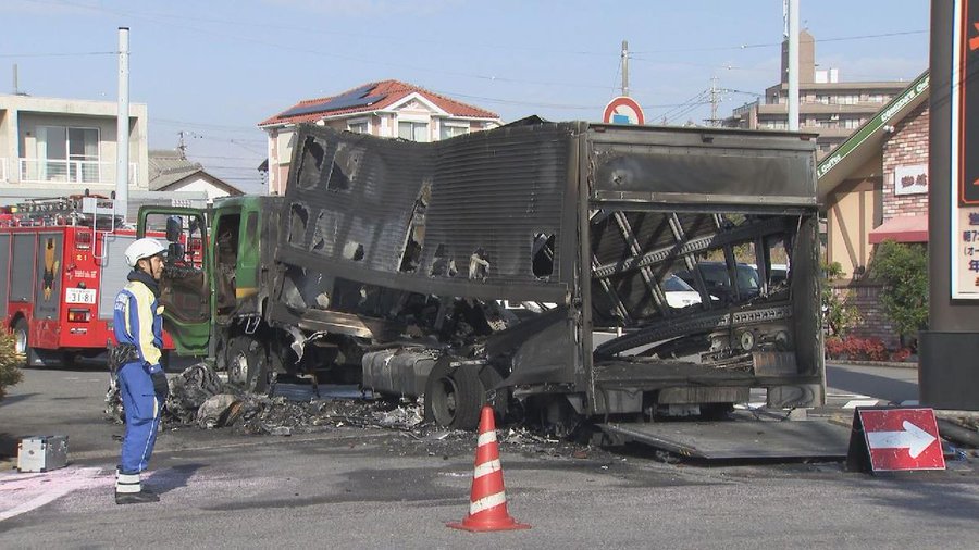 トラックとバイクが衝突し炎上 バイクの男性が死亡 愛知・半田市