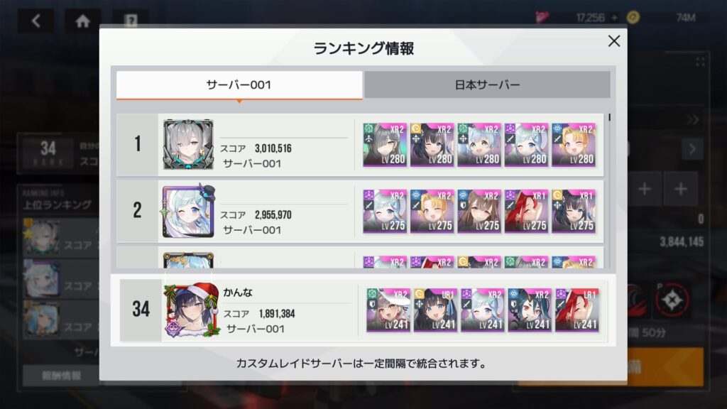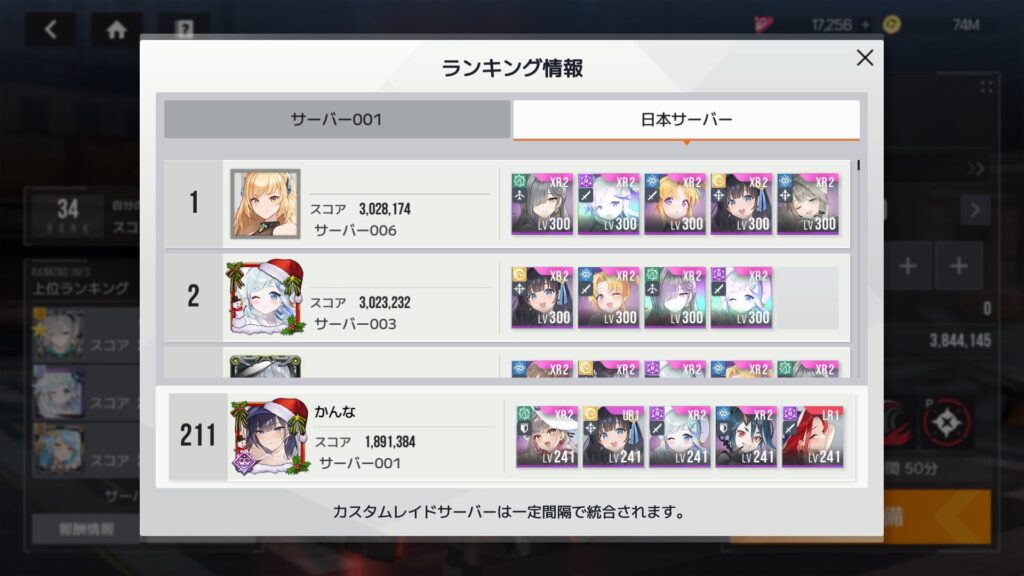 カスタムレイドLv.300のカスタムなし、ディフェンダー2枚でやってみたところ、何とか撃破。カスタムはいいかな。サーバー内暫定34位、国内暫定211位
