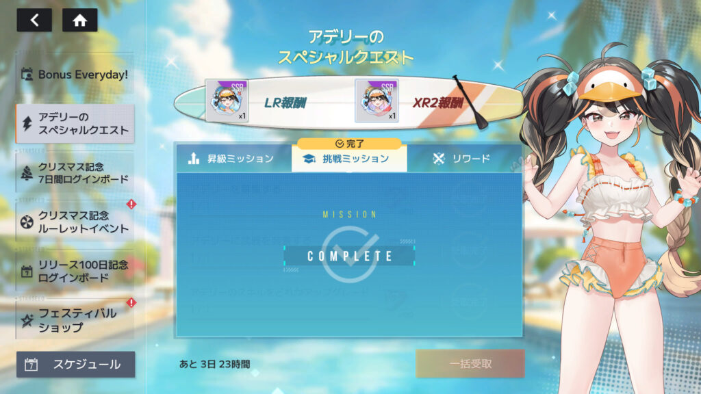 アデリーの挑戦ミッションクリア