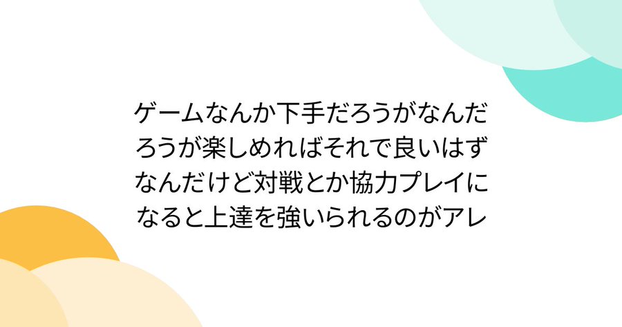 ゲームなんか下手だろうがなんだろうが楽しめればそれで良いはずなんだけど対戦とか協力プレイになると上達を強いられるのがアレ