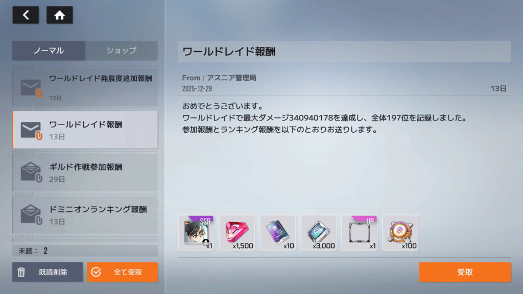 ワールドレイド197位