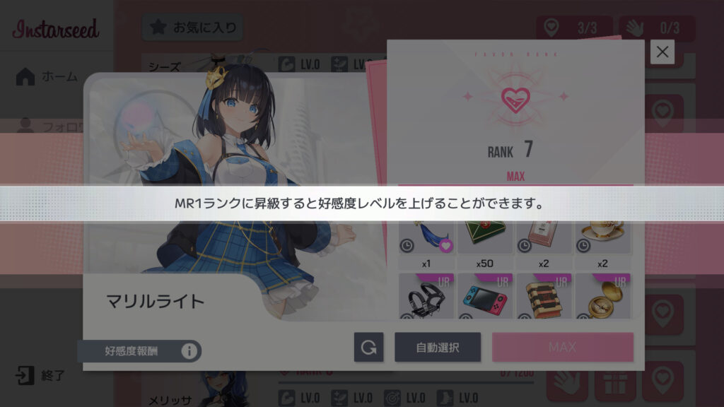 好感度8に上げれるのはMR1からか…