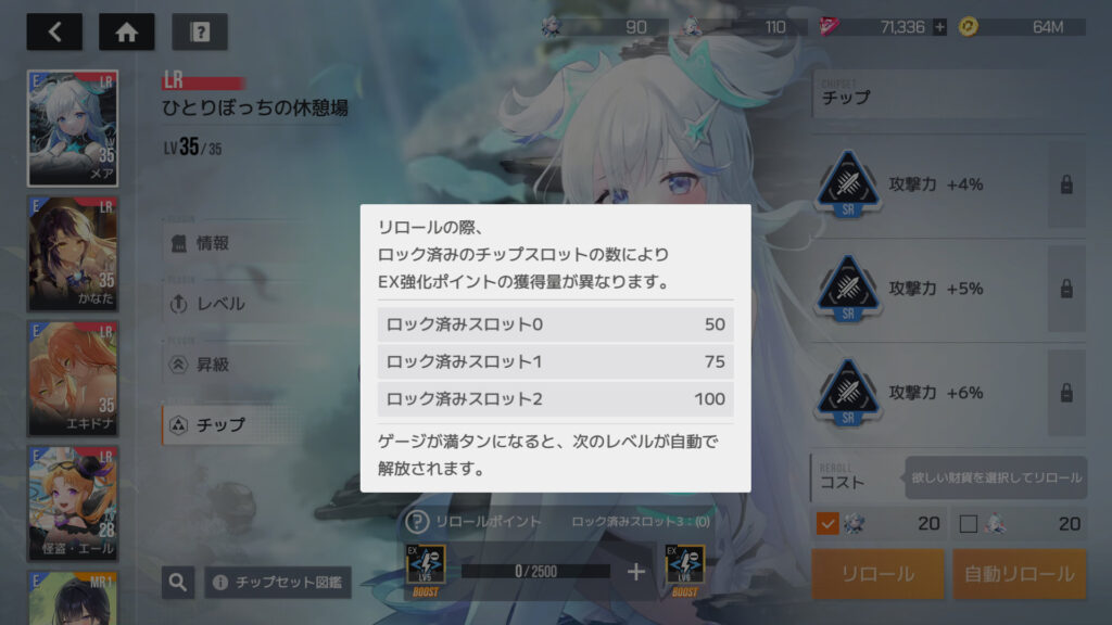 これは何だ、と思ったら、プラグインのチップをリロールするとポイントが貯まって、プラグインEXスキルをLv.5以上にアップできる奴か… ここはエンドコンテンツ中のエンドコンテンツなんだよな。キャラとプラグインを両方完凸した後で始めるコンテンツ