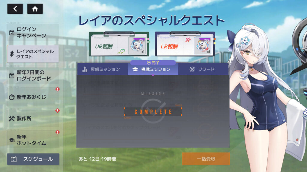 レイアの挑戦ミッションクリア