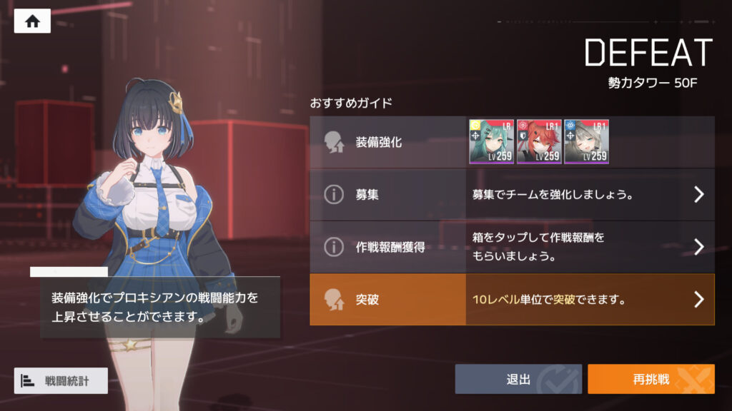 勢力タワー50Fまで来たけど、きついな。戦闘記録は全員XR2レイア
