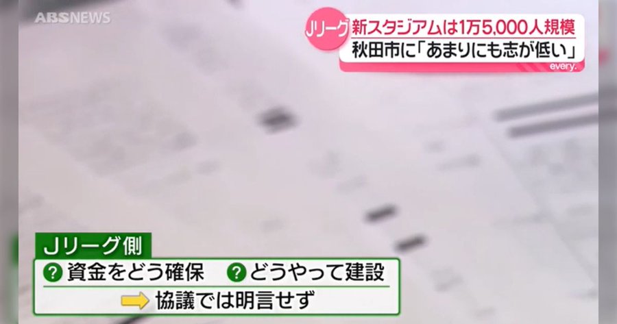 秋田市の新スタジアム協議、Jリーグ関係者が「上限1万人というのは、あまりにも志が低い」と指摘するなど紛糾していた模様